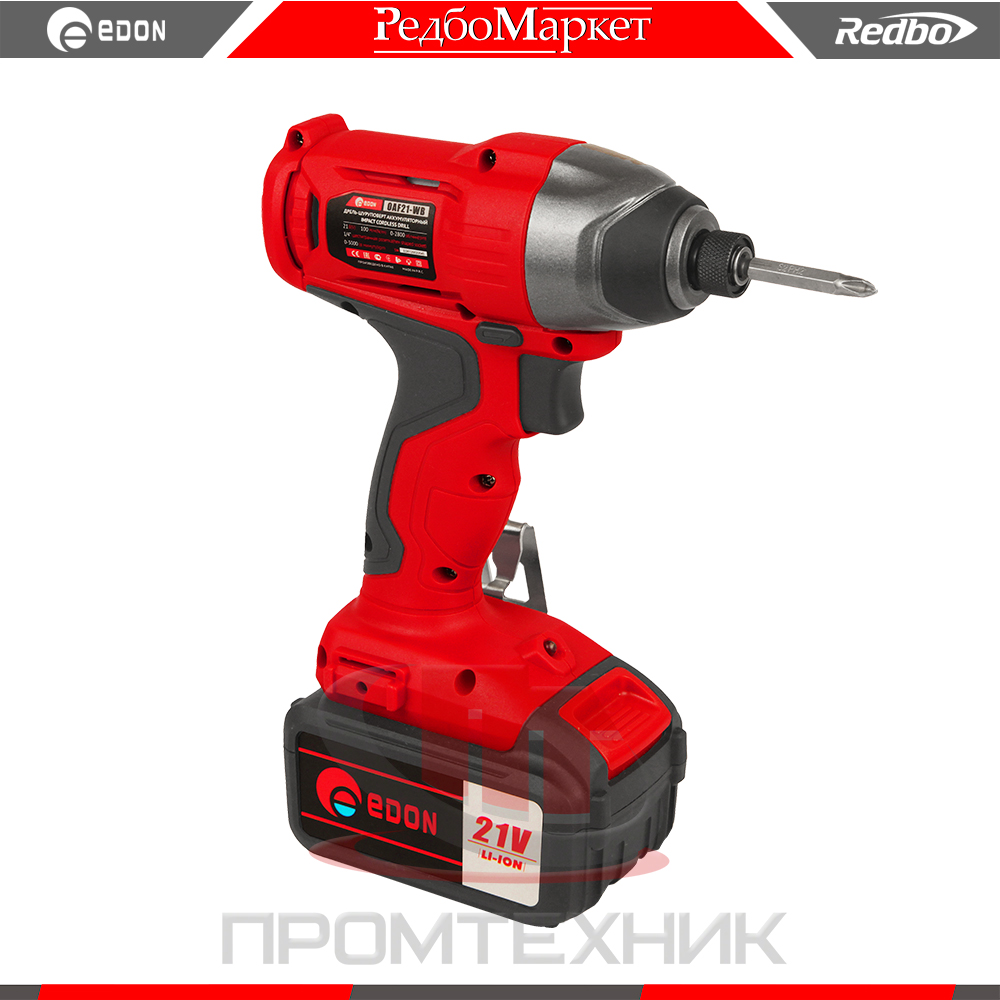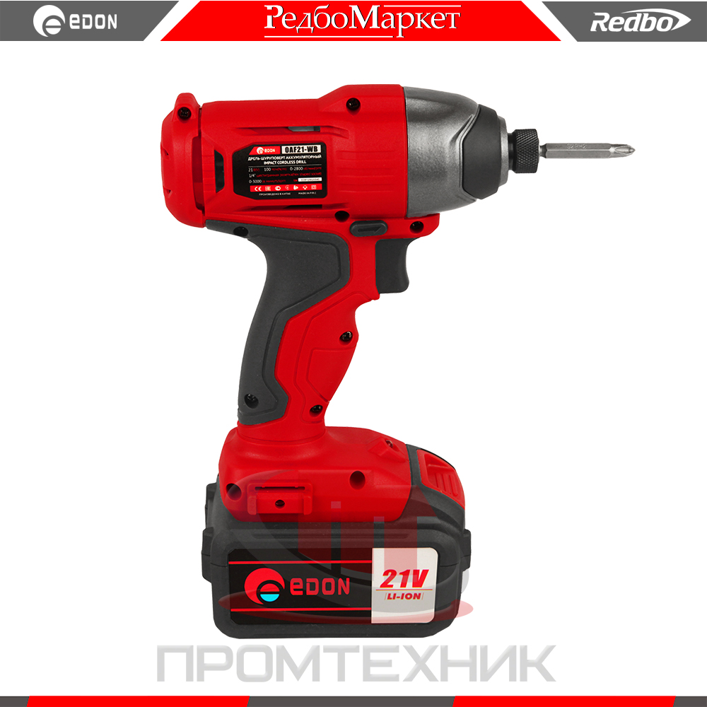 Винтоверт аккумуляторный безударный Edon OAF21-WB, предназначена для закручивания, отворачивания болтов, гаек, винтов и шурупов, сверления отверстий в различных конструкционных материалах (в том числе металле, дереве, пластмассе и т.п.)