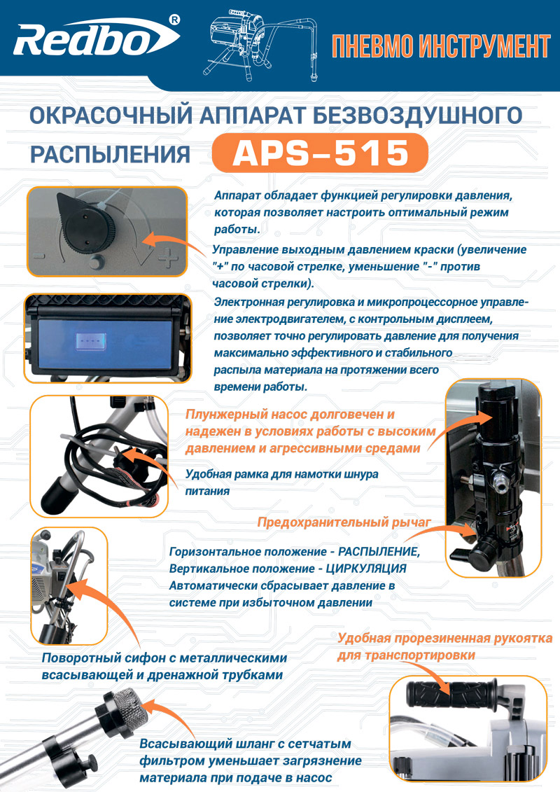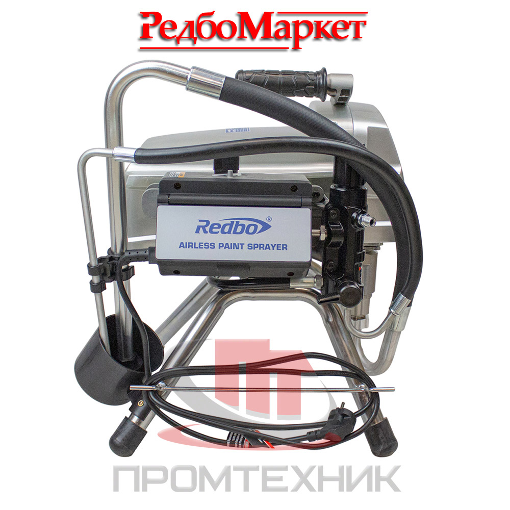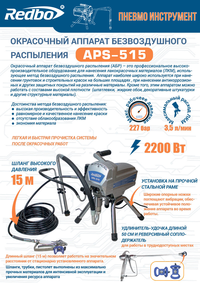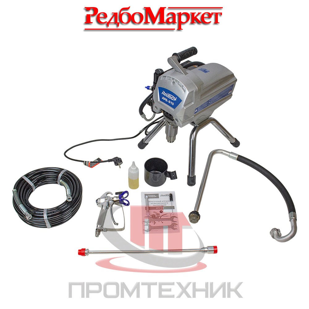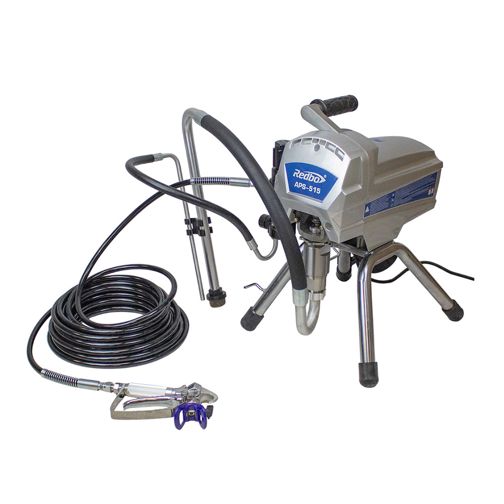 Аппарат в комплекте со всасывающей системой, шлангом высокого давления и краскораспылителем используется в отделочных работах при окраске поверхностей большой площади.