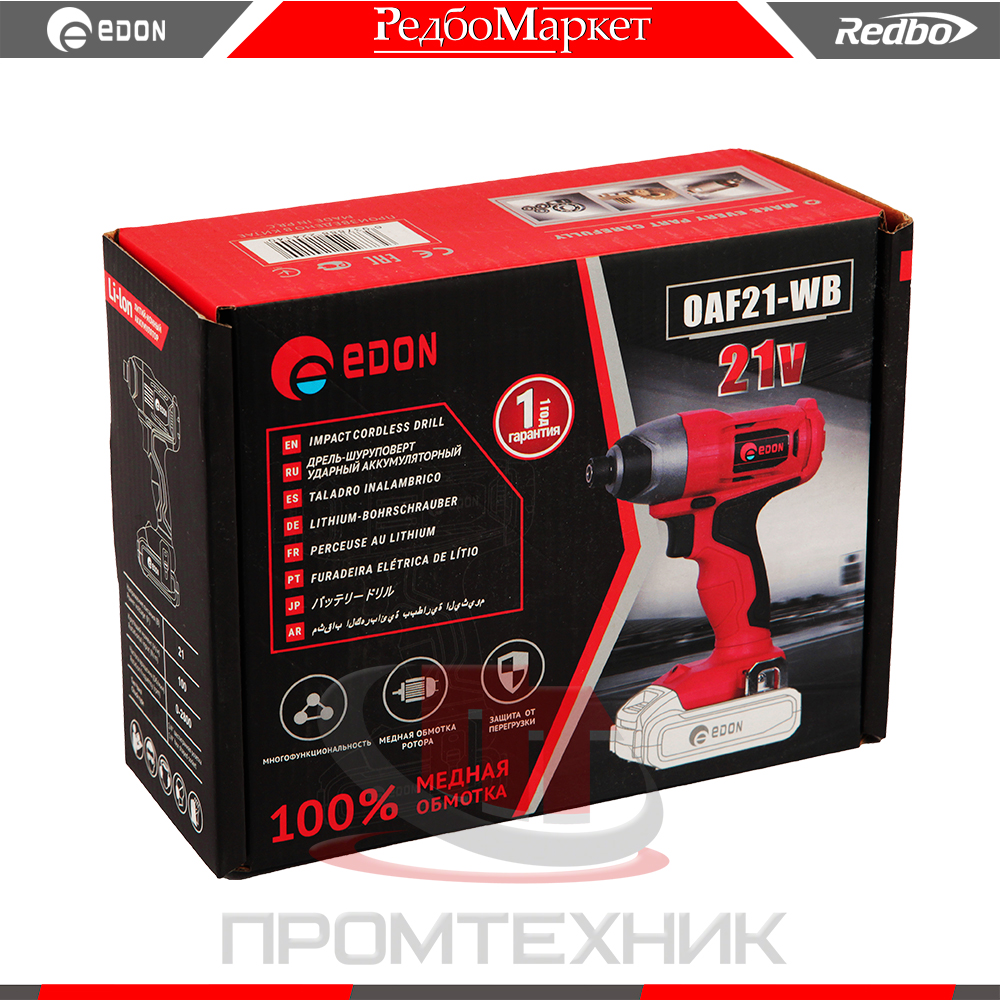 В комплект поставки входит: аккумулятор Edon LIO/OAF-3,0A∙h и зарядное устройство Edon OAF21-1100CB.